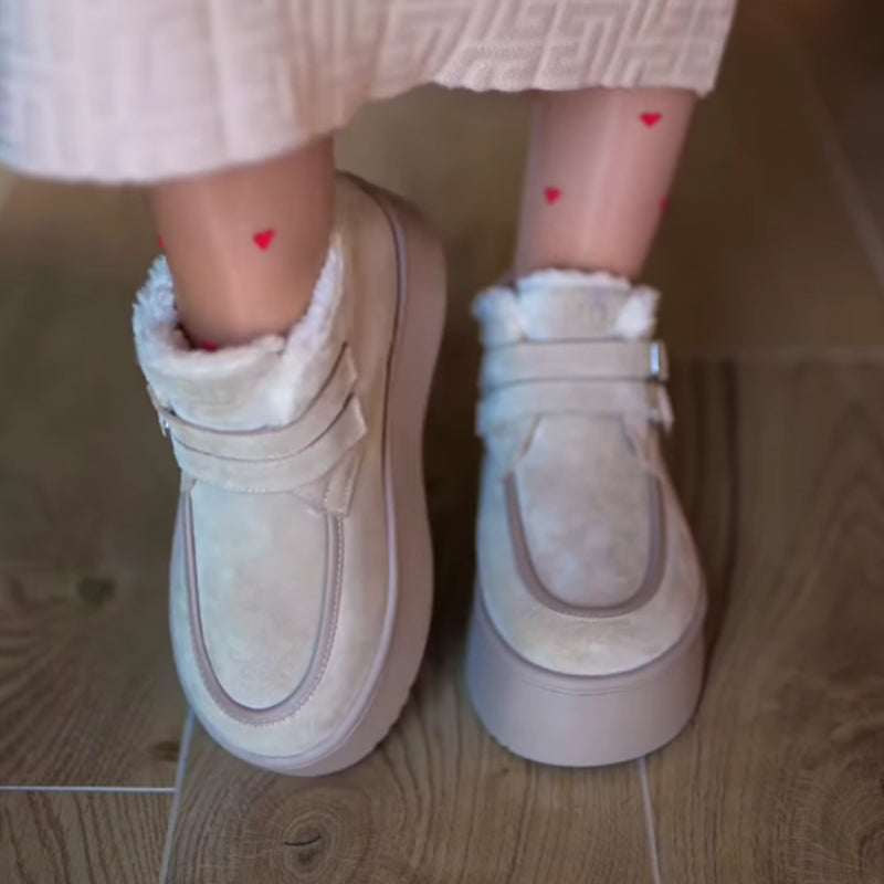 Fleece-lined Round Toe Casual Warm Platform Loafers