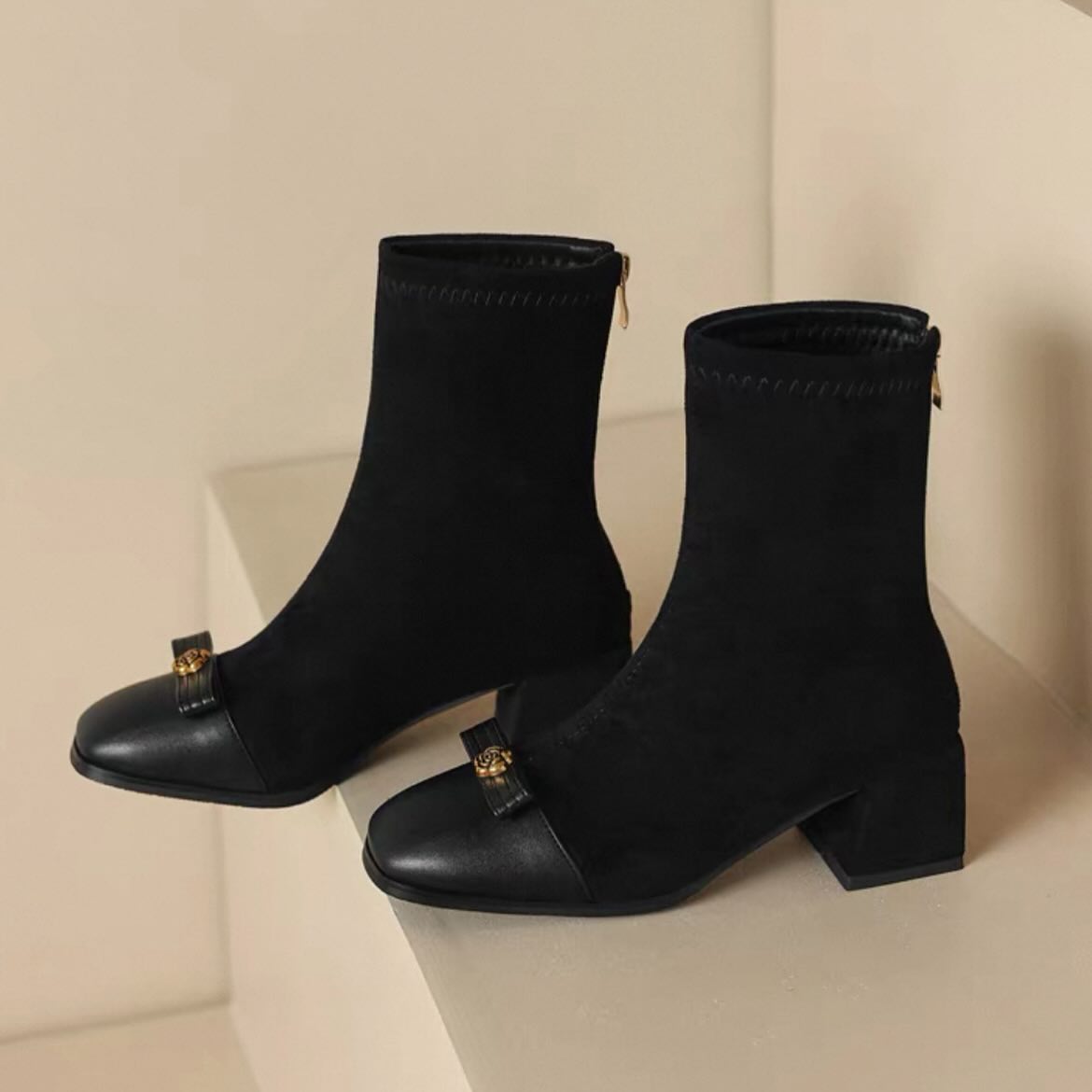 Suede Paneled High-heeled Boots