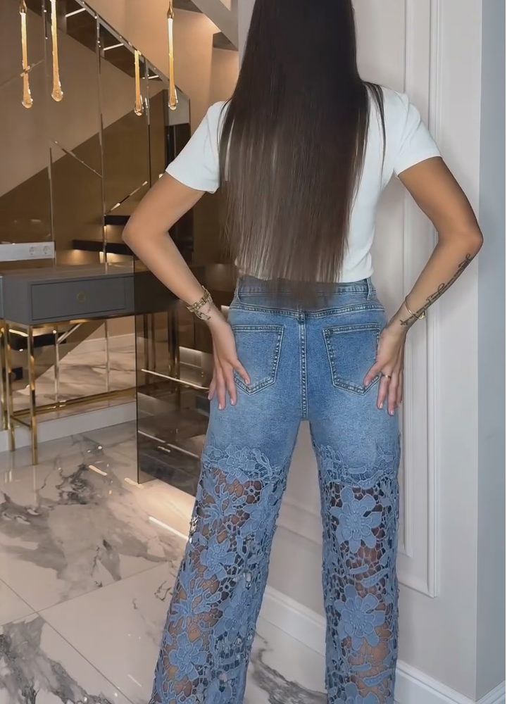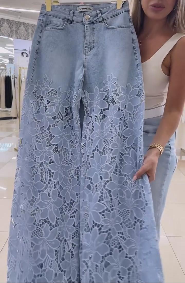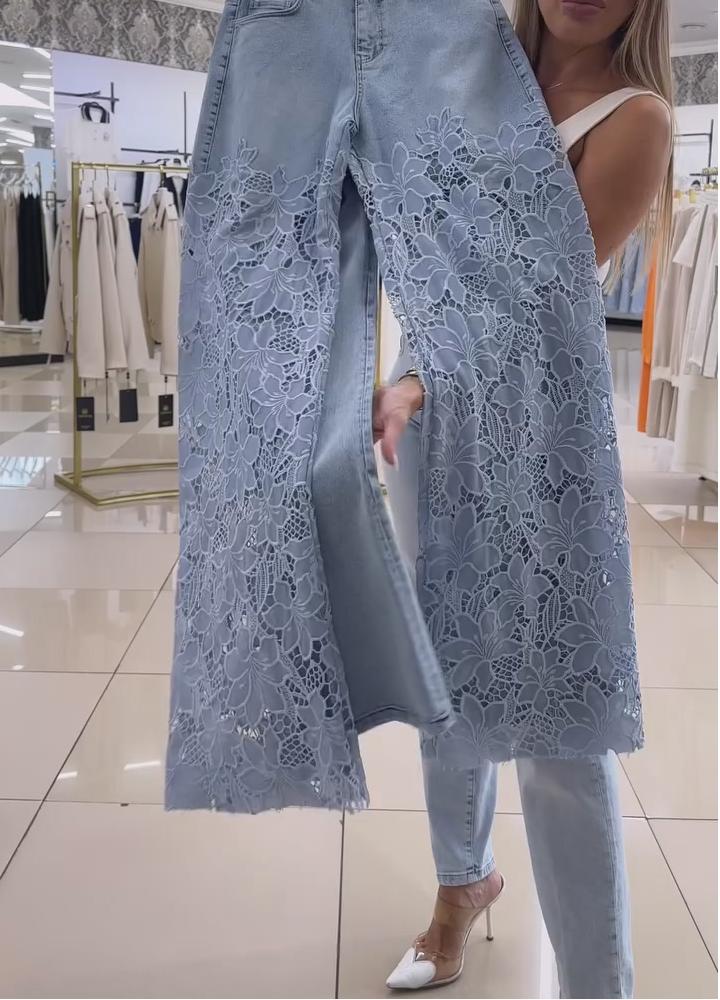 Women's Hollow Lace Wide Leg Jeans